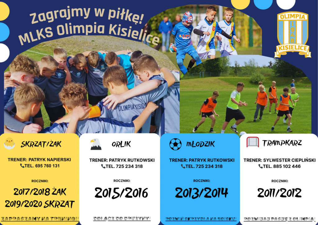 Z tego miejsca serdecznie zapraszamy wszystkie chętne dzieci i młodzież do dołączenia do rodziny Olimpii Kisielice! Trwa nabór do drużyn młodzieżowych na sezon 2025/2026:
