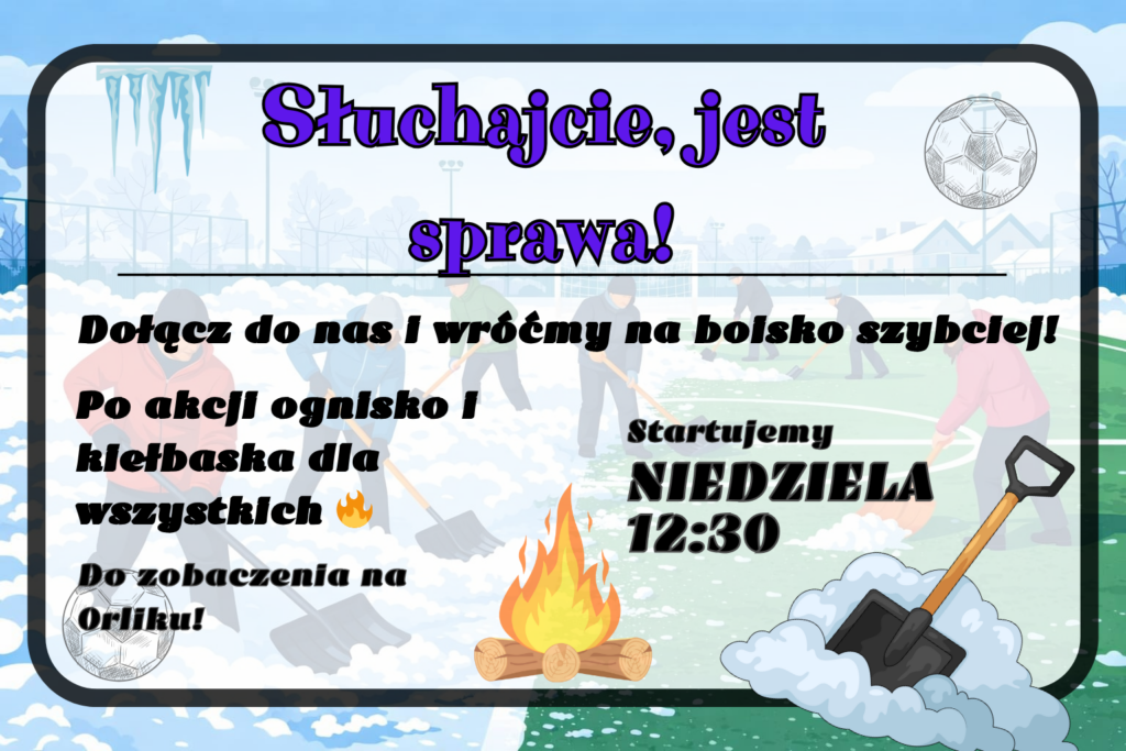 Bądźcie z nami, wspierajcie Olimpię, przyjdźcie na odśnieżanie i turniej. Razem możemy zrobić naprawdę dużo.