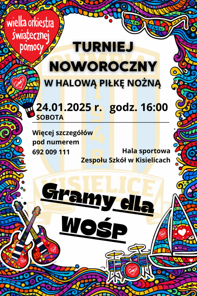 To jednak nie koniec dobrych informacji. Przed nami 34. Finał Wielkiej Orkiestry Świątecznej Pomocy. W tym roku również włączamy się w pomoc i zapraszamy na Noworoczny Turniej Halowej Piłki Nożnej, podczas którego będziemy grali dla WOŚP i wspólnie tworzyli wyjątkowe sportowe wydarzenie.