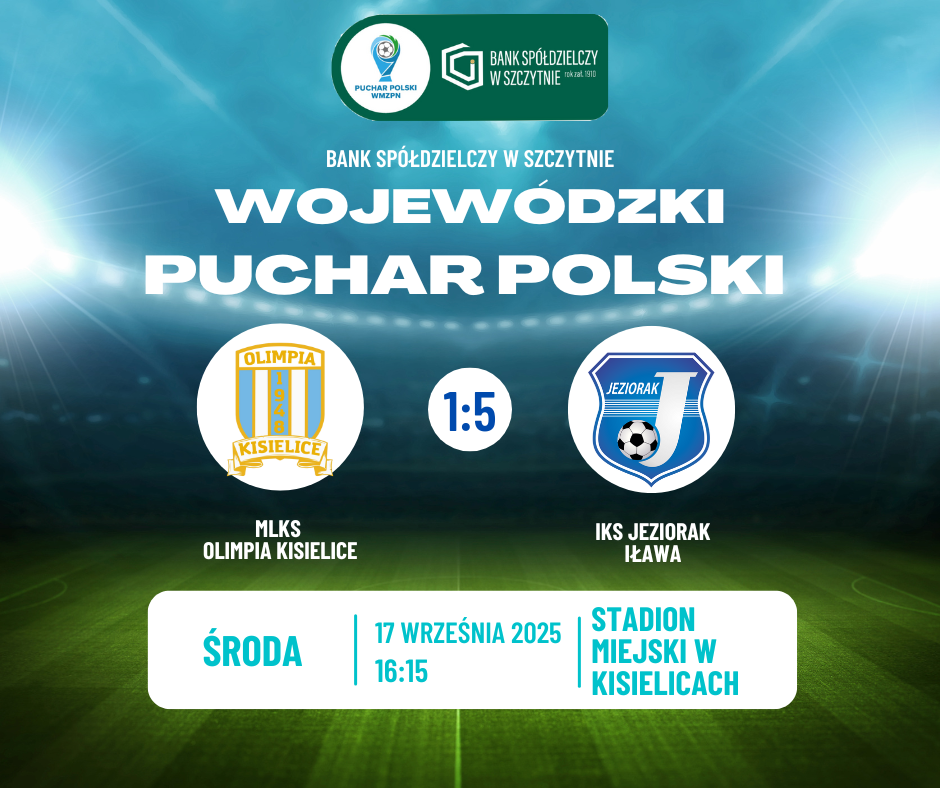 17 września 2025 roku na stadionie przy Alei Wojska Polskiego w Kisielicach rozegrana została 3. runda Wojewódzkiego Pucharu Polski. Nasza Olimpia podejmowała dobrze znany w regionie zespół IKS Jeziorak Iława. Spotkanie, które rozpoczęło się o godzinie 16:15, od samego początku miało wyjątkową atmosferę – dla nas było to swoiste piłkarskie święto, a trybuny wypełniły się kibicami obu drużyn.